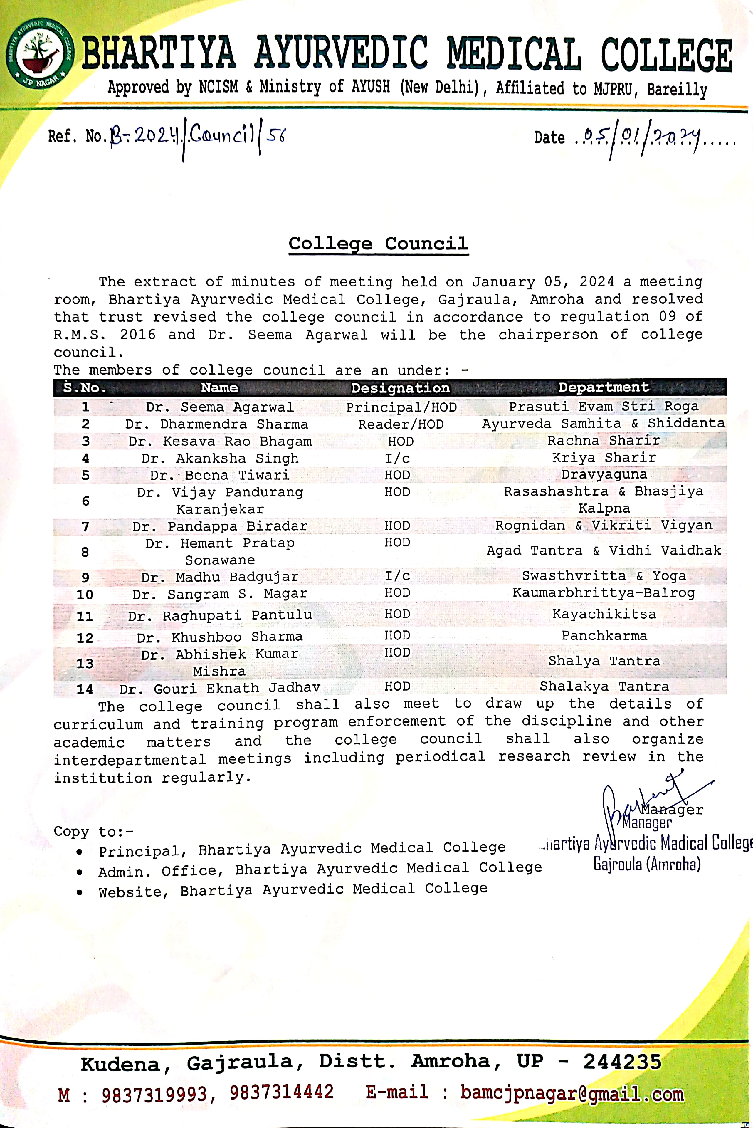 It is my honor and privilege to be writing to you at this moment as the principal of this college. Bhartiya Ayurvedic Medical College which functions under the ageis of IMS Group of institutions is rich in tradition and community involvement and I am proud to be part of this institution.